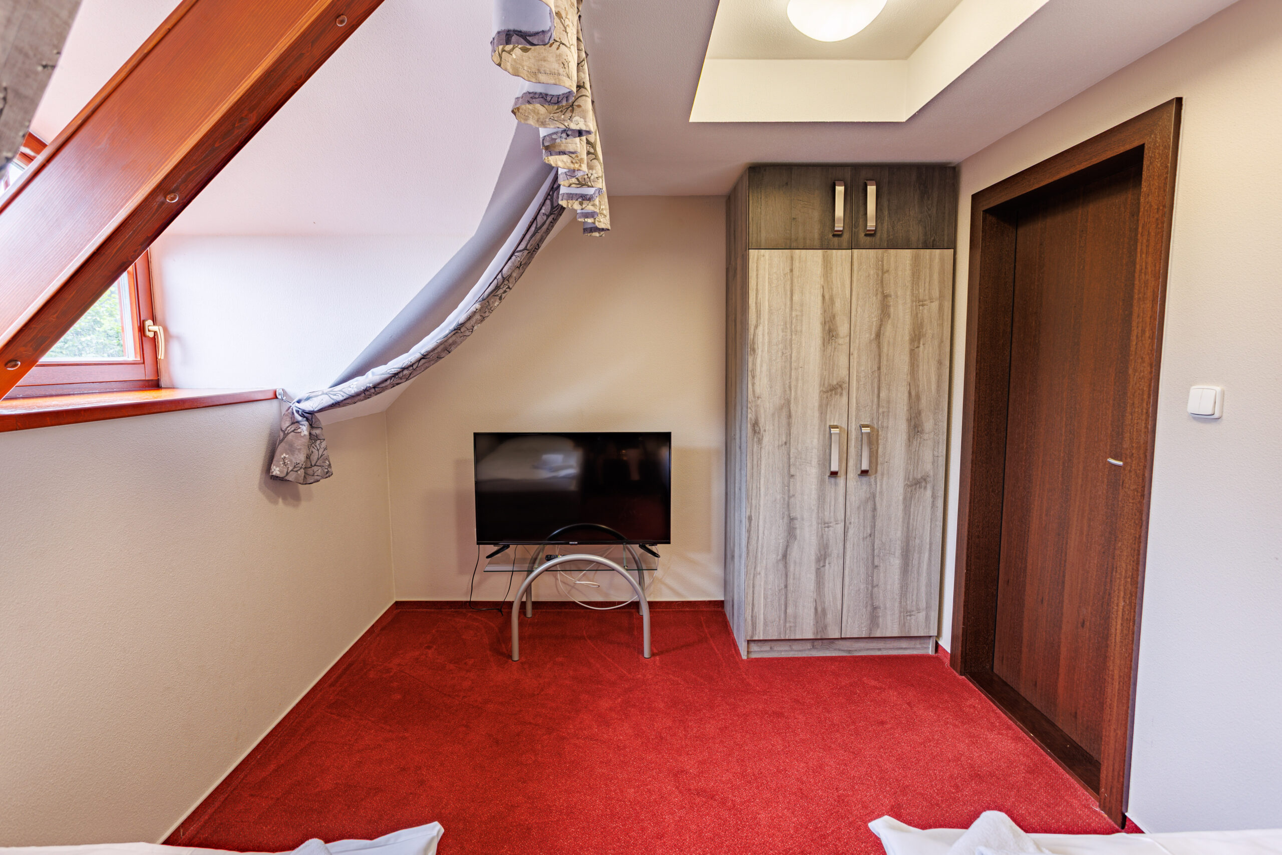 Prezidentské apartmá doporučujeme všem, kteří mají rádi komfortní ubytování. Maximální kapacita je 3 osoby. K dispozici je vana i sprchový kout.