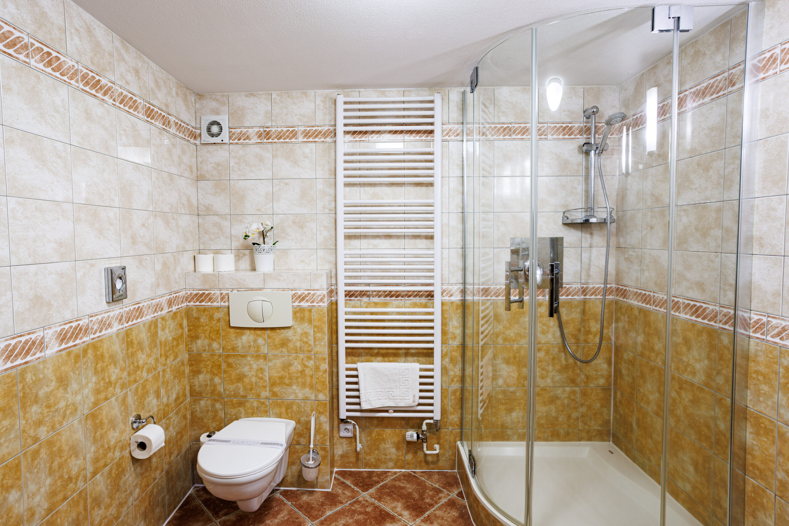Každý pokoj má vlastní koupelnu se sociálním zařízením a moderním sprchovým koutem, některé pokoje jsou navíc vybaveny vanou pro ještě větší pohodlí a relaxaci.